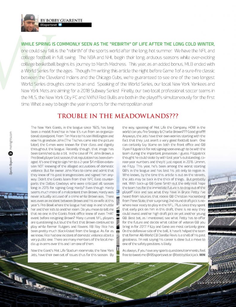 While spring is commonly seen as the “rebirth” of life after the long cold winter, one could say fall is the “rebirth” of the sports world after the long, hot summer. We have the NFL and college football in full swing. The NBA and NHL begin their long, arduous seasons while ever-exciting college basketball begins […]